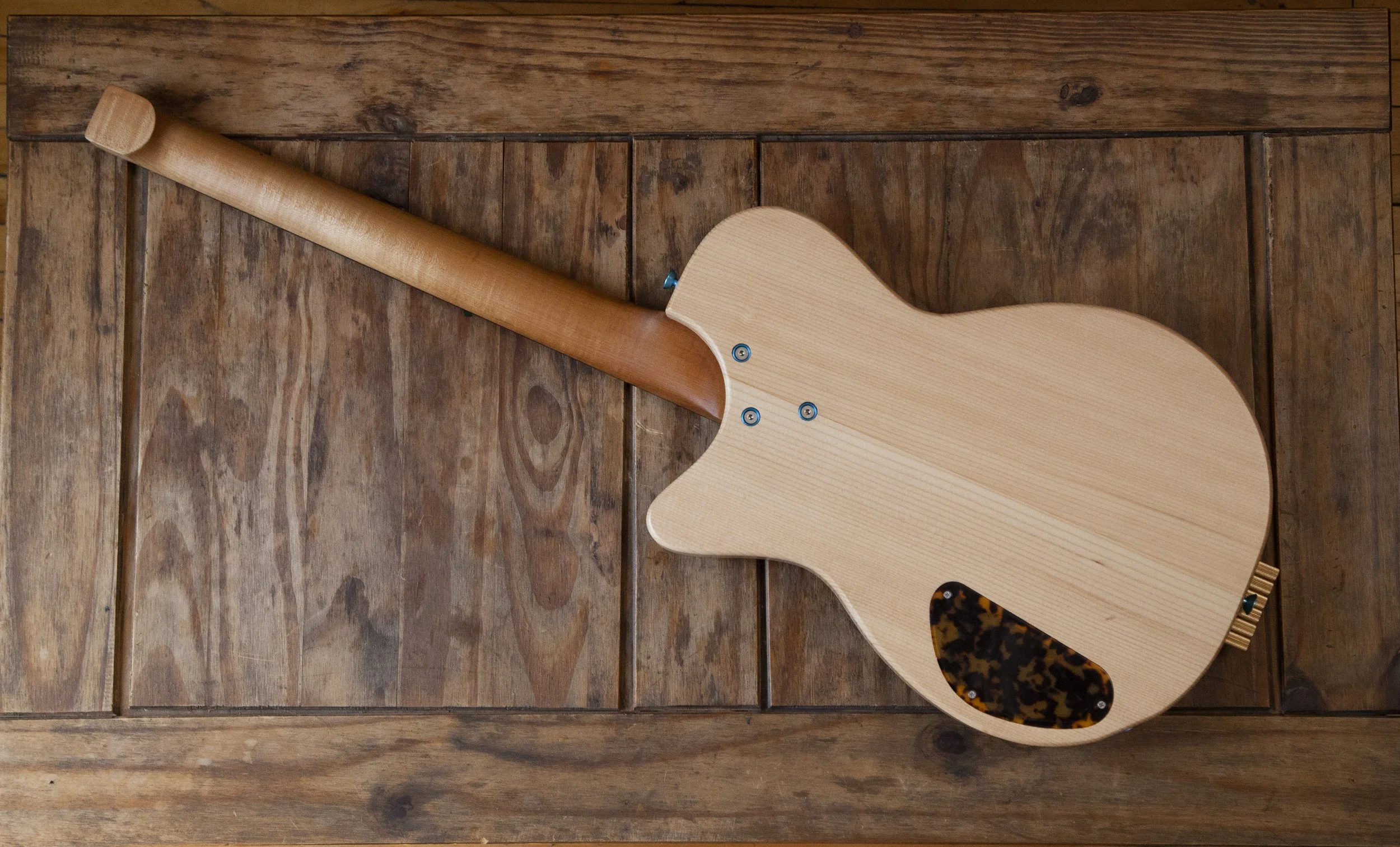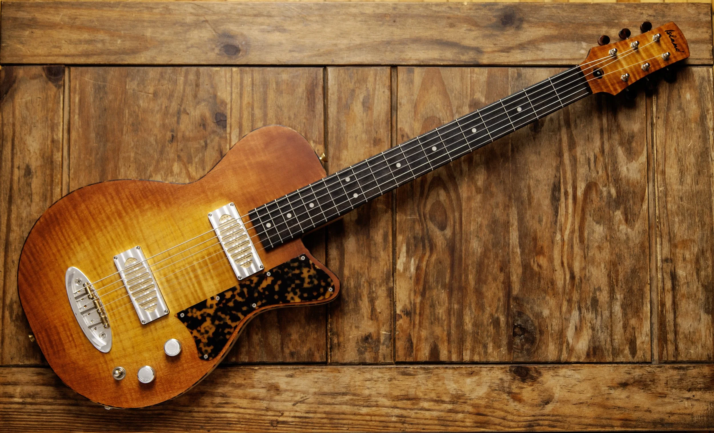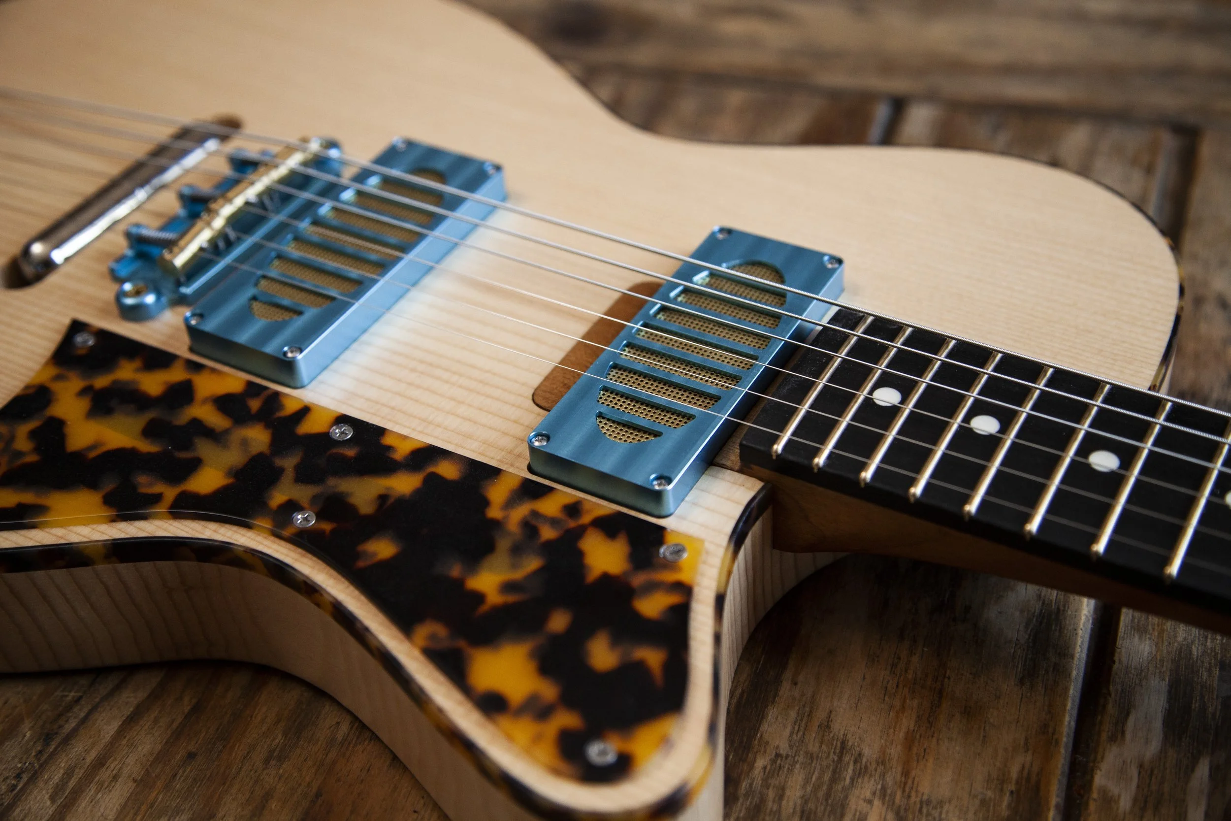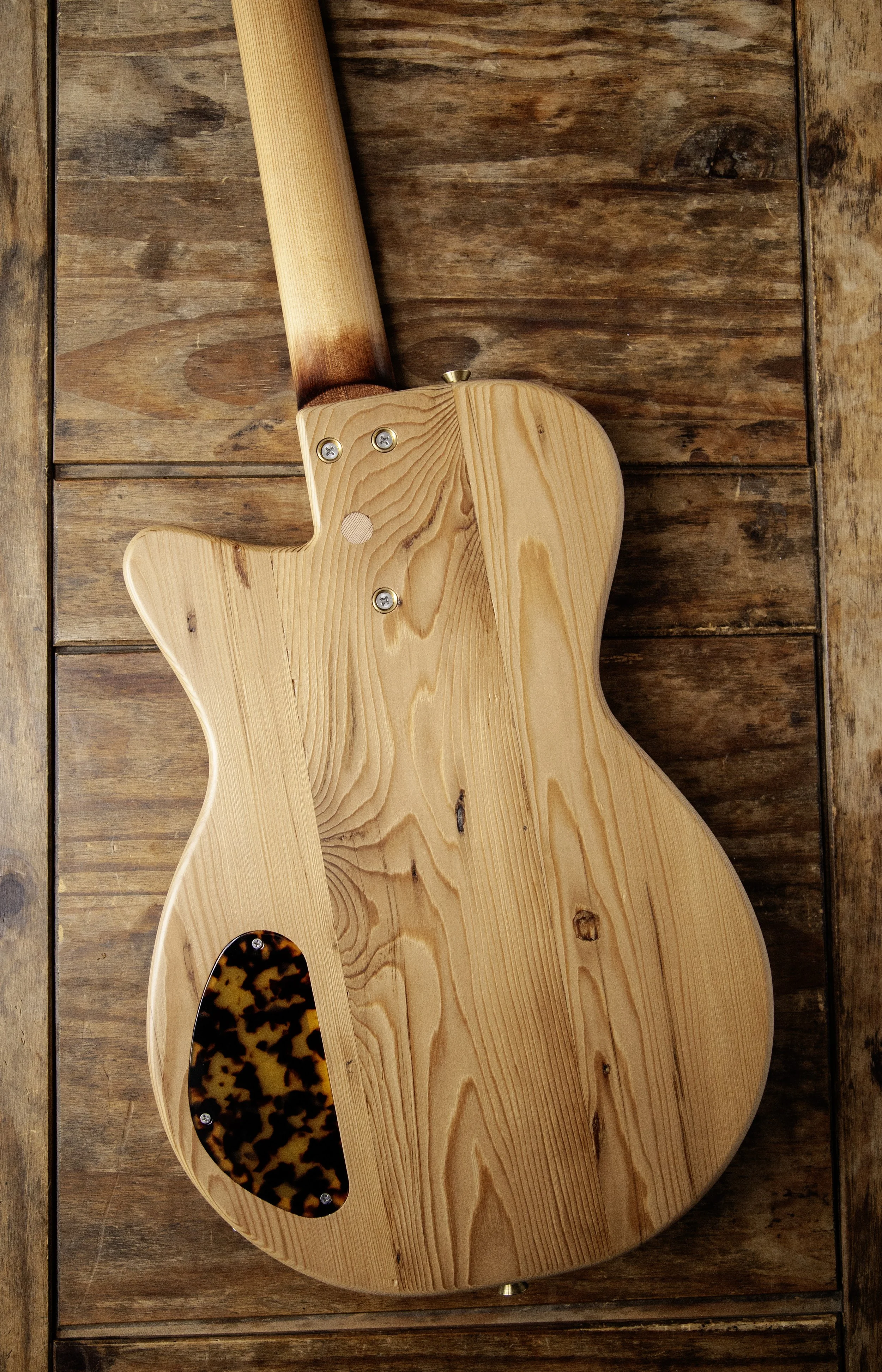 The Atoll shape is inspired by Danelectro. It was originally designed as a baritone guitar, and then became a slightly larger companion to my Forty-Four.