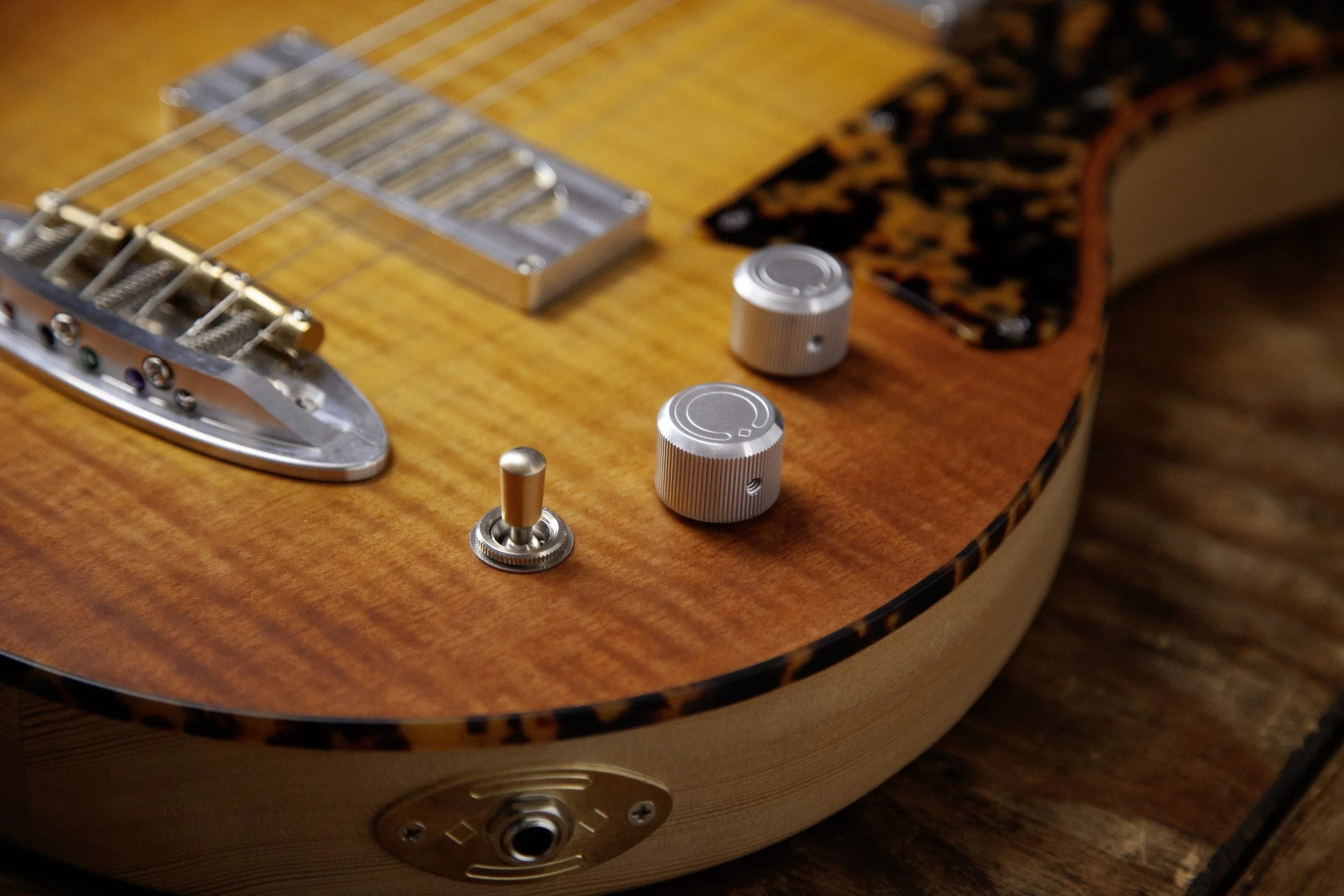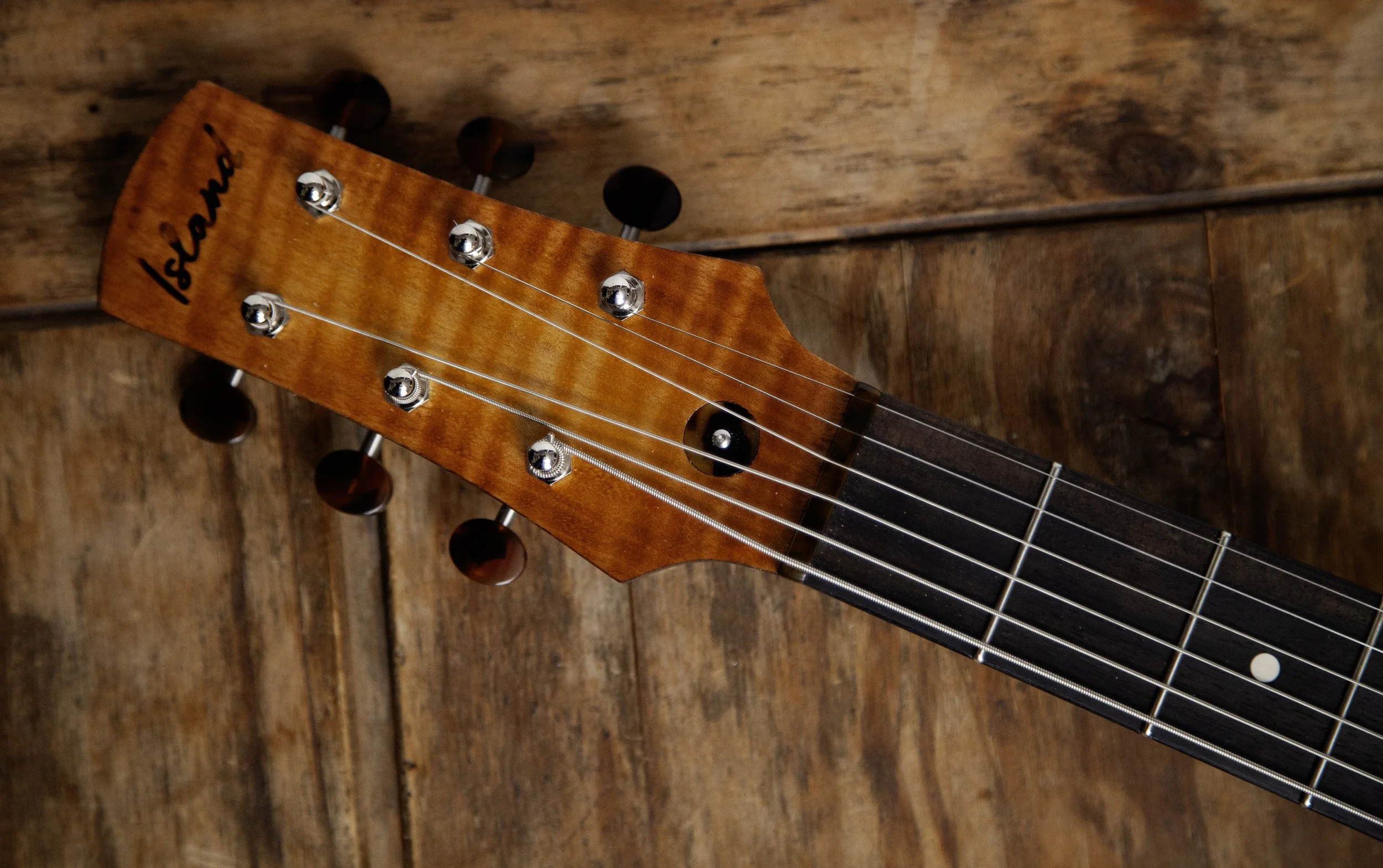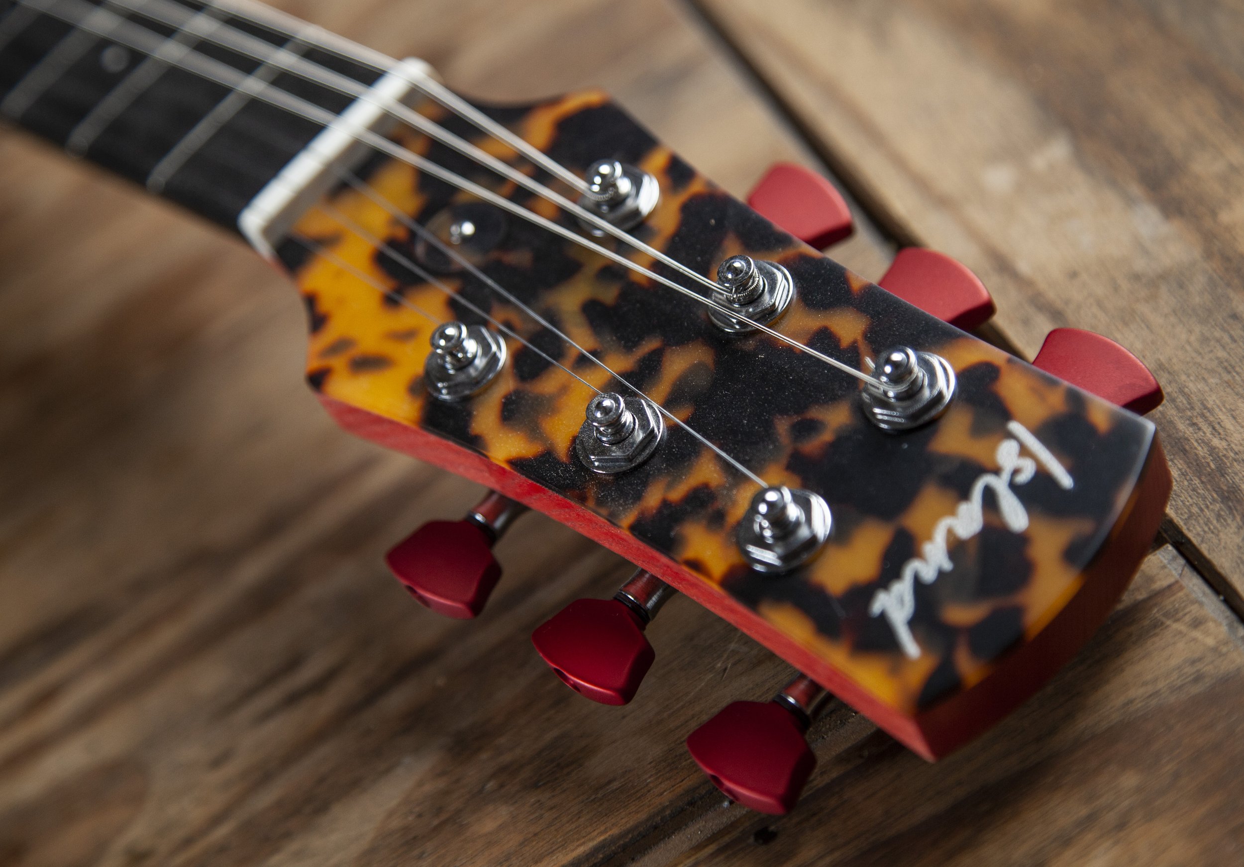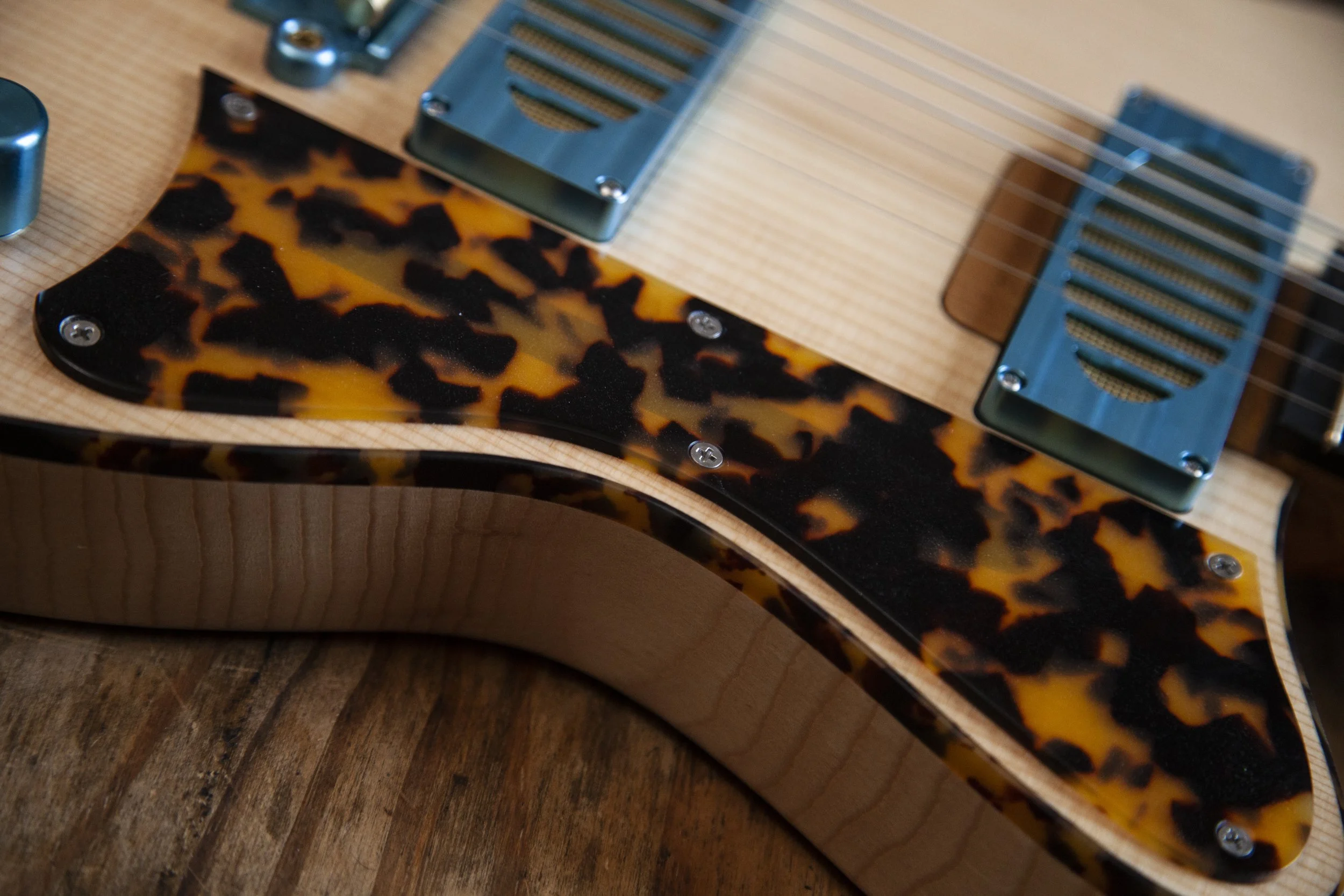 The Atoll shape is inspired by Danelectro. It was originally designed as a baritone guitar, and then became a slightly larger companion to my Forty-Four.