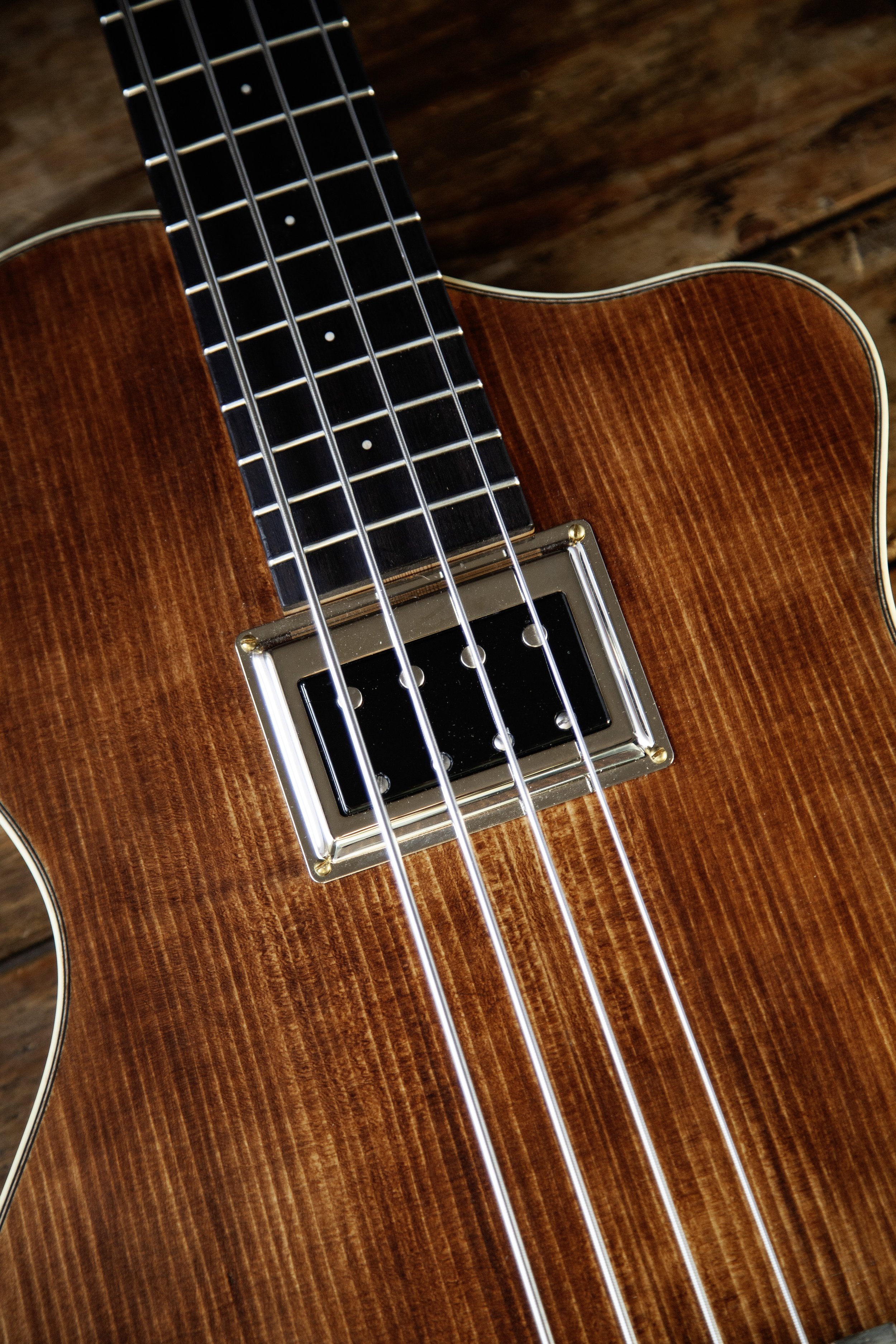 The instrument comes standard with a 31” scale and 4 strings, but can be customized to your liking.